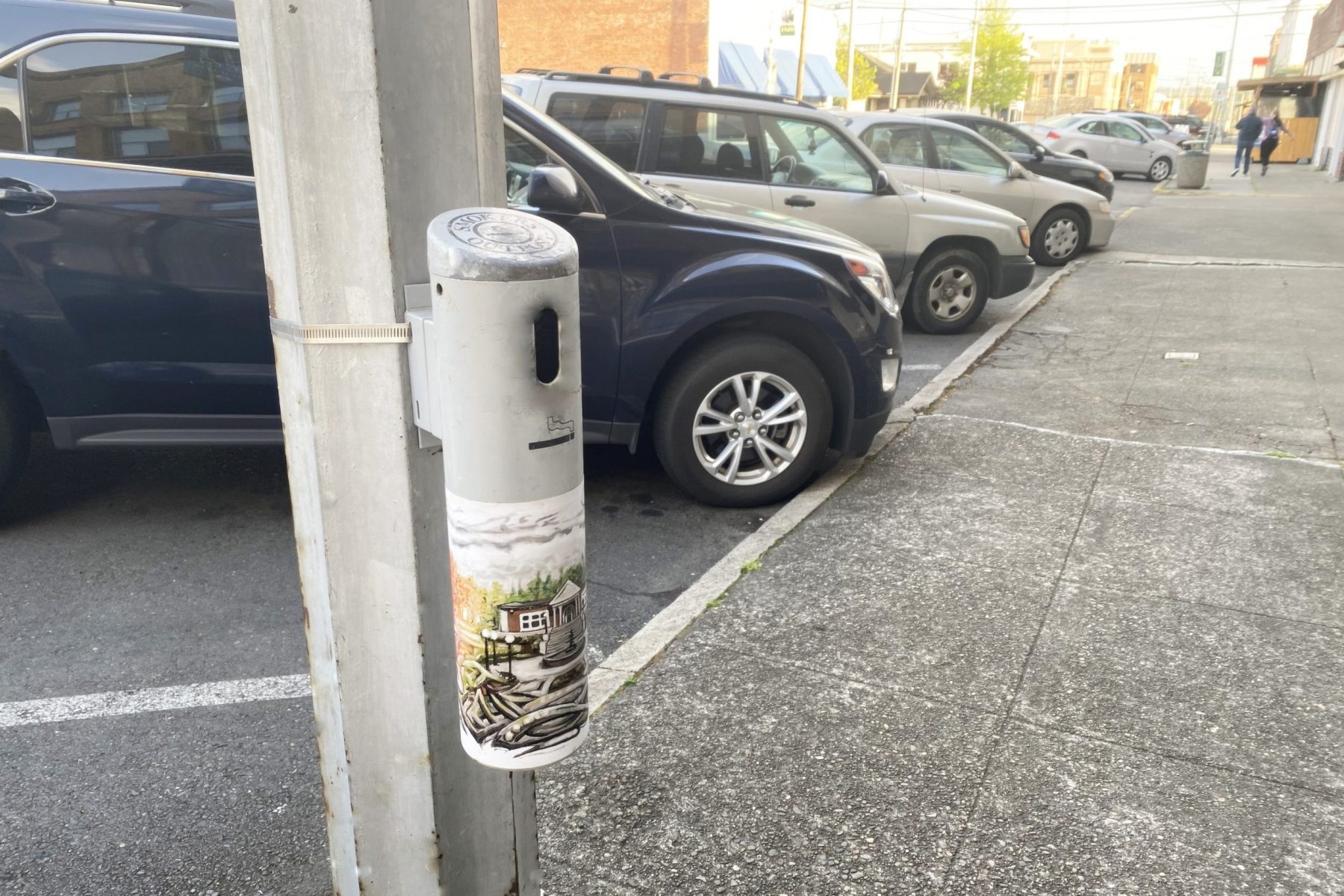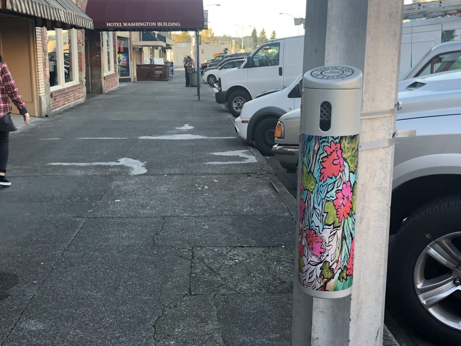 August 2018 – Six new pole-mounted cigarette receptacles have been installed on Market Boulevard and Chehalis Avenue in Downtown Chehalis. These are in addition to five stand-alone receptacles purchased in 2017. The new design was chosen because of the lower cost and to keep the right-of-way less cluttered. Experience Chehalis (formerly named the Chehalis Community Renaissance Team) urges folks to use these receptacles and keep our sidewalks clean. Experience Chehalis thanks the City of Chehalis for the maintenance of these new additions.