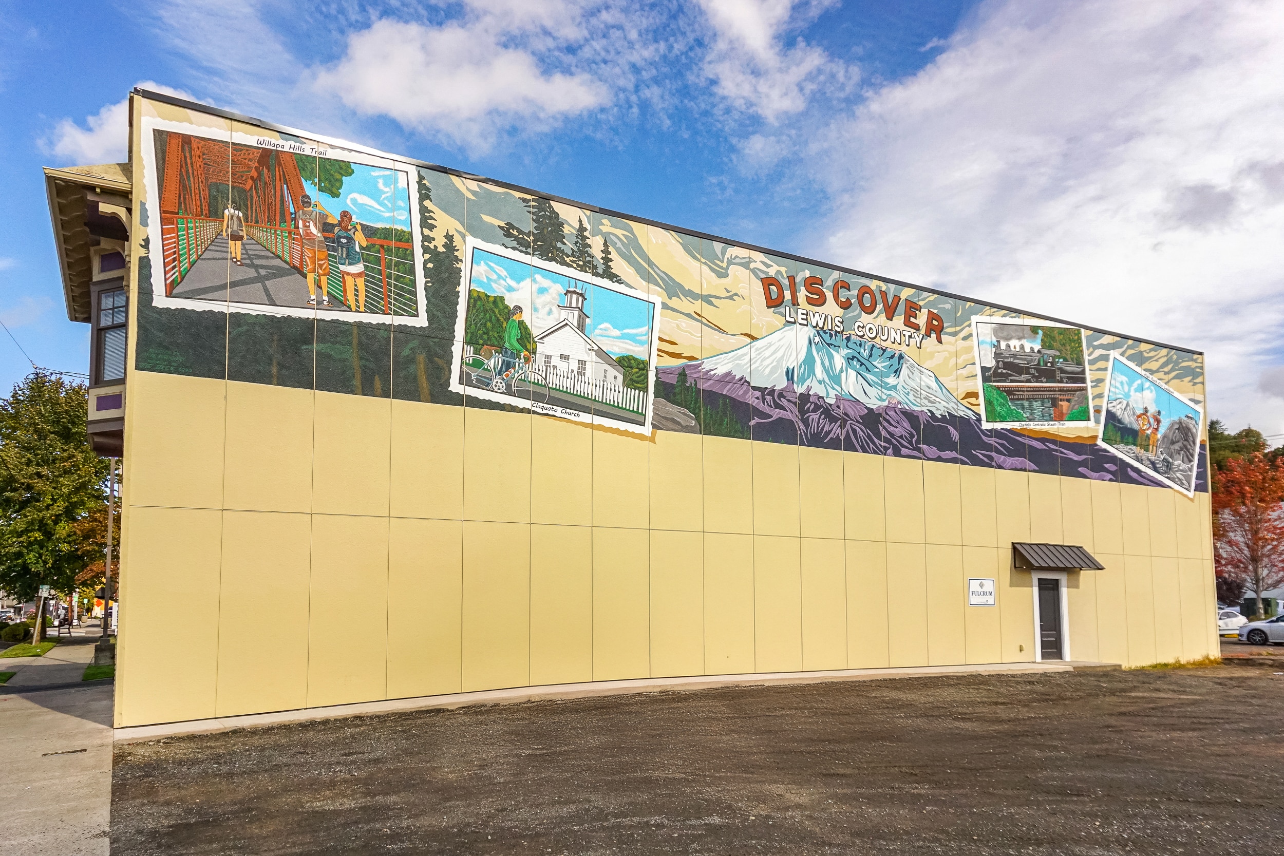 The mural is inspired by the cycle of life and nature’s regeneration, encouraging reflection on how small things grow and matter. A forest ranger serves as the watcher and caretaker, symbolizing our connection to the natural world. It is located behind Bigfoot Treasure at 548 N Market Blvd in Downtown Chehalis.